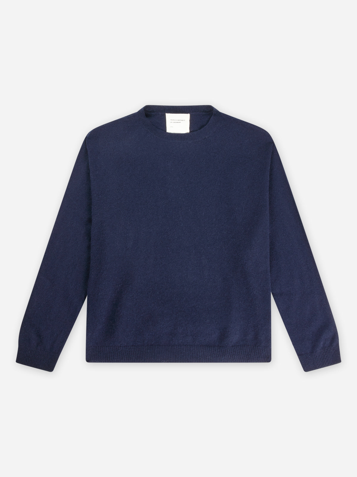 Classic Navy Blue Oversized Crewneck in Cashmere